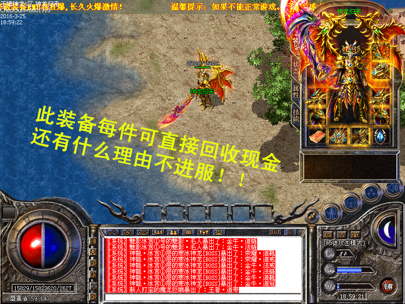 【回收介绍】:每一件装备都可以兑换1-40RMB点,散人日赚100很轻松