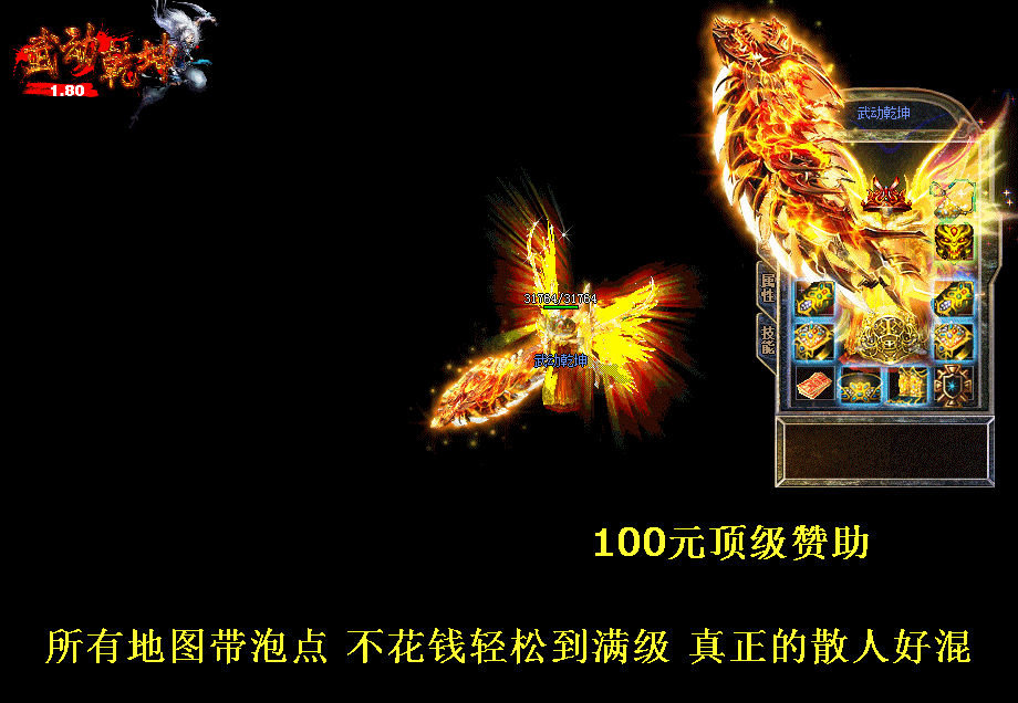 游戏介绍 >> 本游戏是一款无特戒,无秒杀的游戏,是真正意义上的80合击升级版,完美设置,以散人为核心,让游戏更加激情!