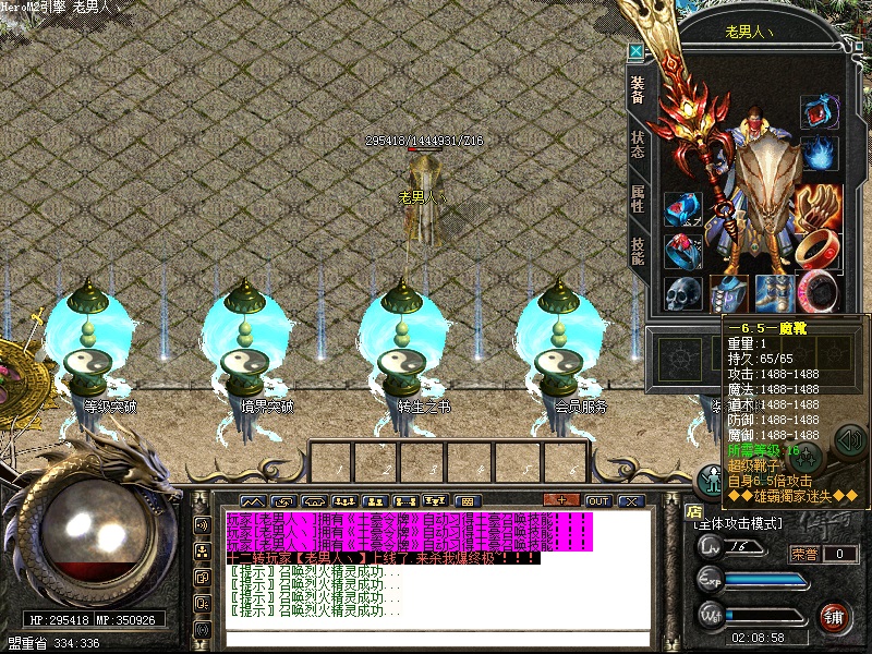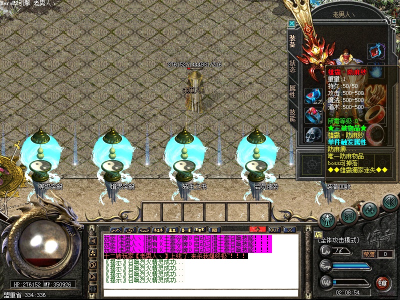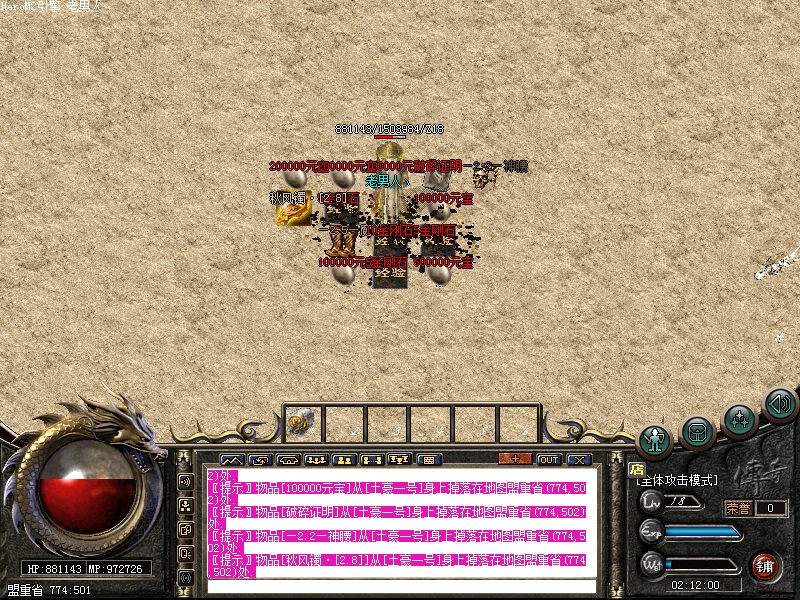 为了使散人更好的发展,我们特地增加了野外boss,各大主城每2小时刷新2只终极boss,具体坐标由玩家自行探索。