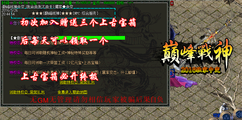 版本介绍: 巅峰战神独家新版.活动奖励丰富,别错过哦