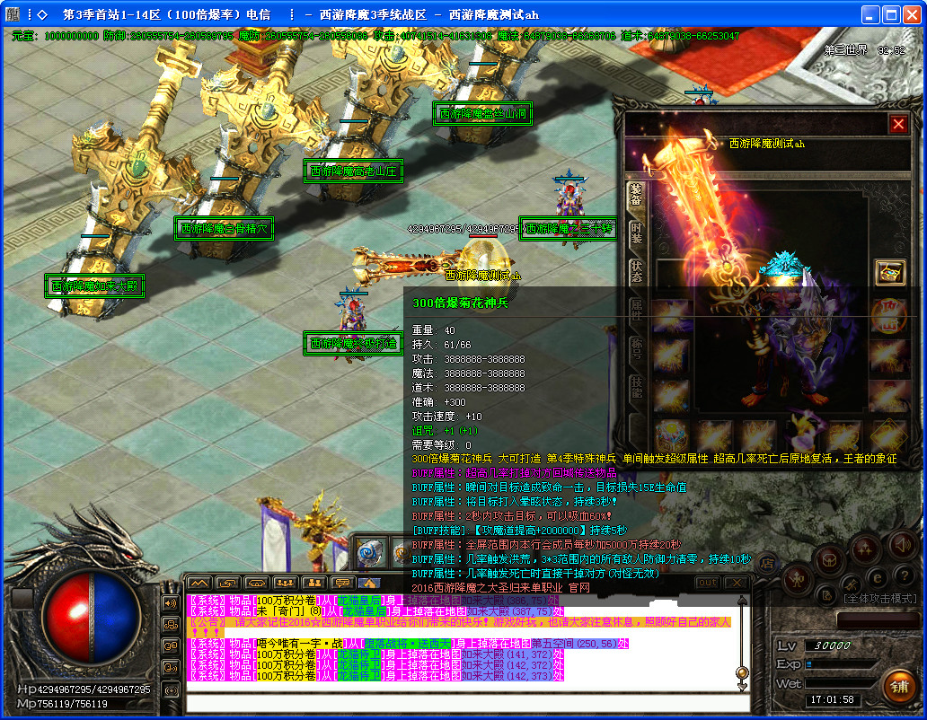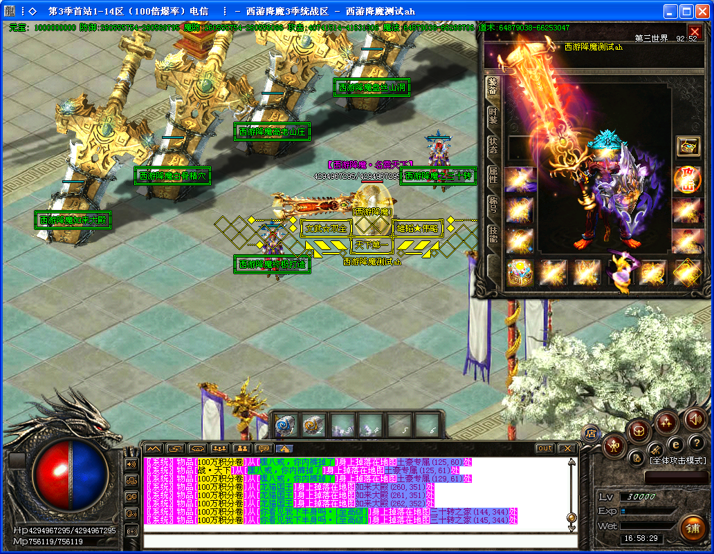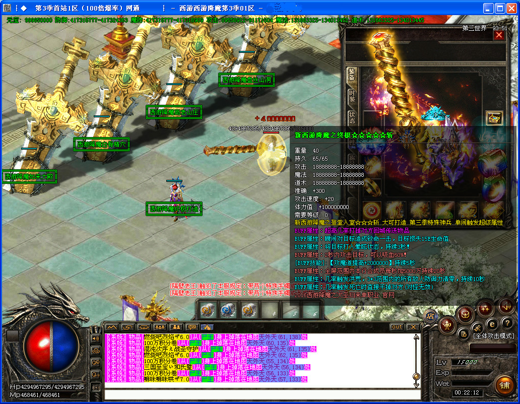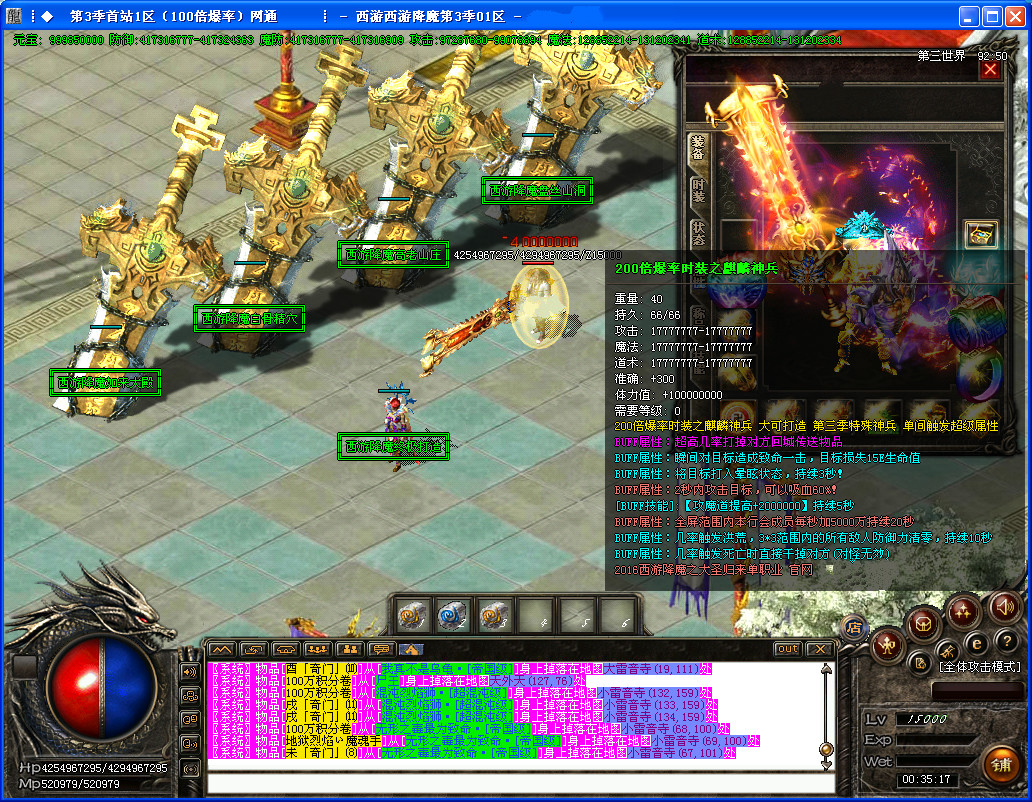 第三步就是提升等级了,上线10000级,顶级30000,满转30转,左下角第三世界里面全部是等级地图,根据自己等级进入,后期有第四战场以及第五空间以及登峰造极这几个地图直接出终极,看你的等级以及转身了,剩下的就是打怪,总之有时间你就有一切!!!