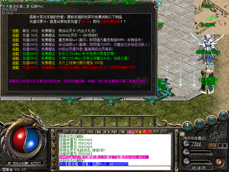 新增加多个活动地图,刷新各种BOSS.大家碰到千万别错过了.... |