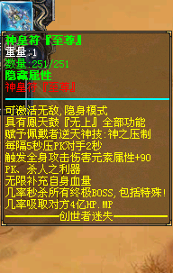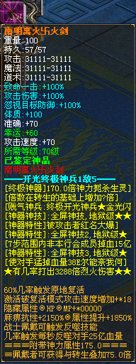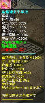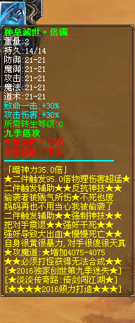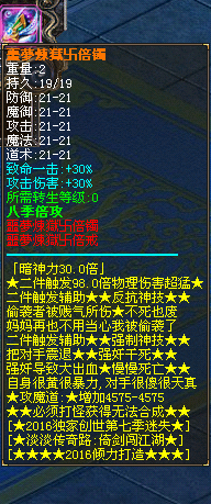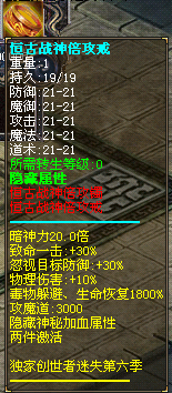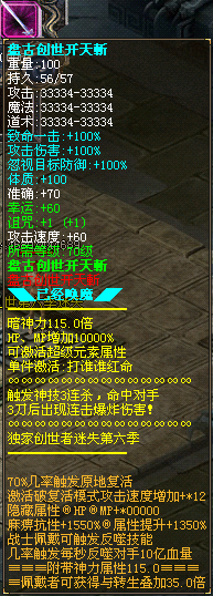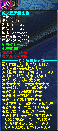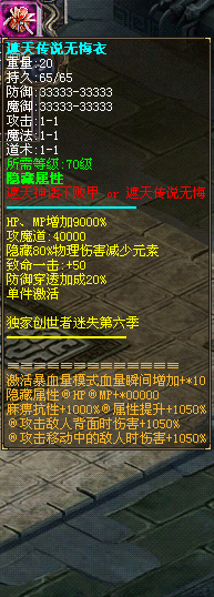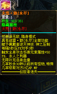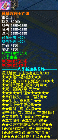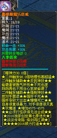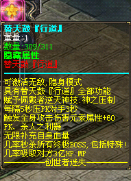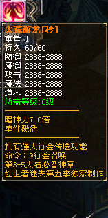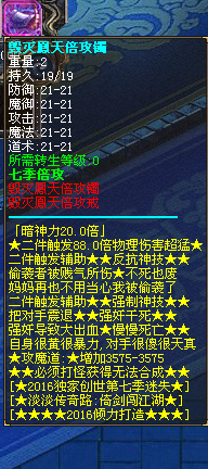 游戏介绍⑤ : 本服共27转,转生越高爆率越好。本服所有装备全爆,让玩家体验爆装备的激情,所有装备已进行测试,PK起来更加爽!