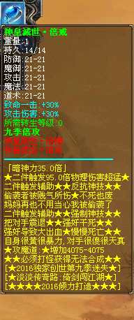 6:第九季更新内容:增加20倍攻击左手武器,PK绝对输出。