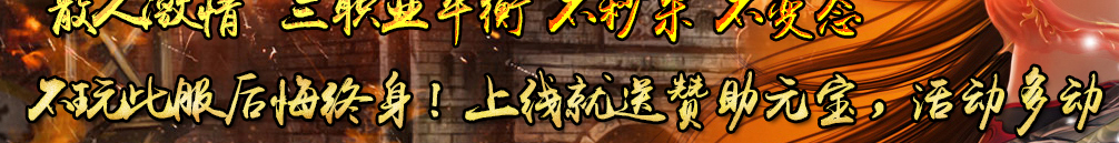 【散人介绍】:开区活动送赞助,测试送大量元宝,全新地图,全新体验!!