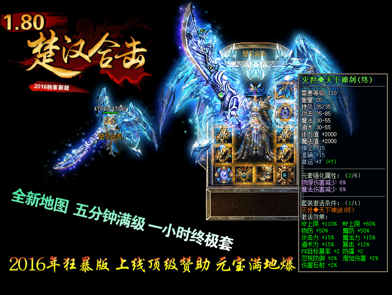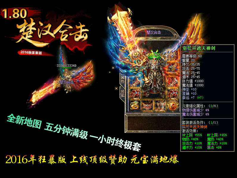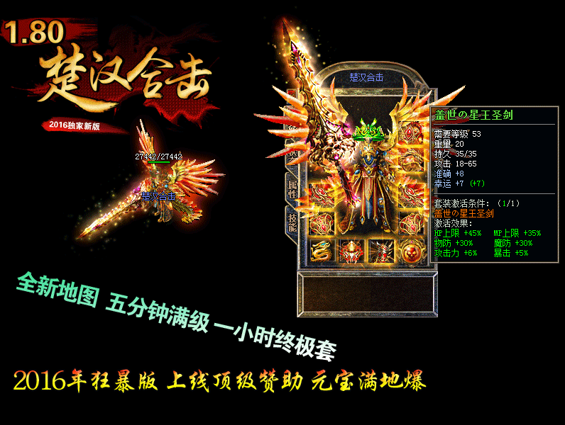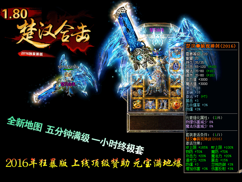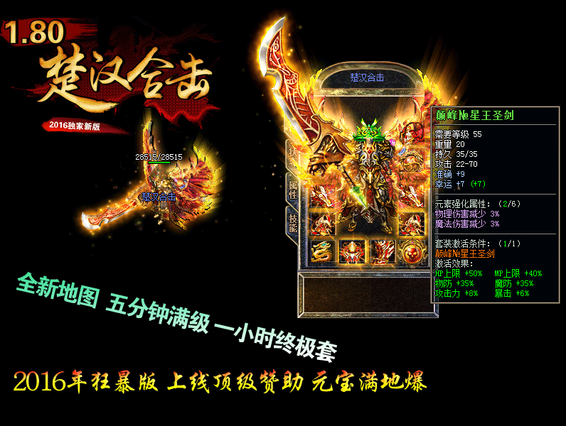 【版本介绍】:“楚汉新版” 2016新年巨作80极品合击,打造超级火爆人气,敬请你的光临