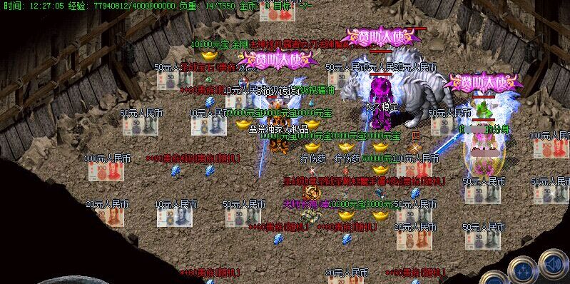 ⑧特别介绍:新增财神爷,爆1-100元不等的人民币,可到游戏中的“举报”NPC找客服兑换成真实人民币,数额不限!