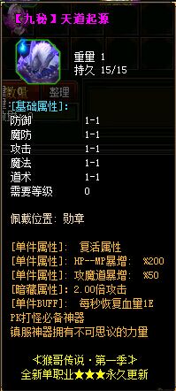 游戏介绍⑦ >> 十二洪荒奇门(隐身属性)爆率可观,凑齐可进入会员地图升阶,功能强大