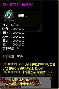 游戏介绍⑨ >> 同时稻草人系列任何一种福利BOSS,几率爆秒杀神符 |