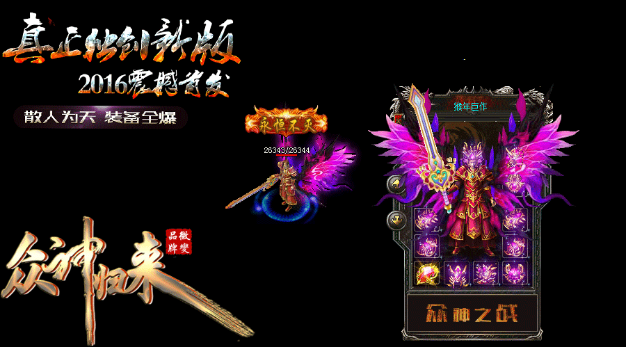游戏介绍① >> 2016独家微变,众神归来。打造微变之王,广告量大,散人超多,多区开放,超级激情,快捷打造,8大BOSS地图30分钟刷新一次,次终极地图有爆!激不激情请看老区!!!