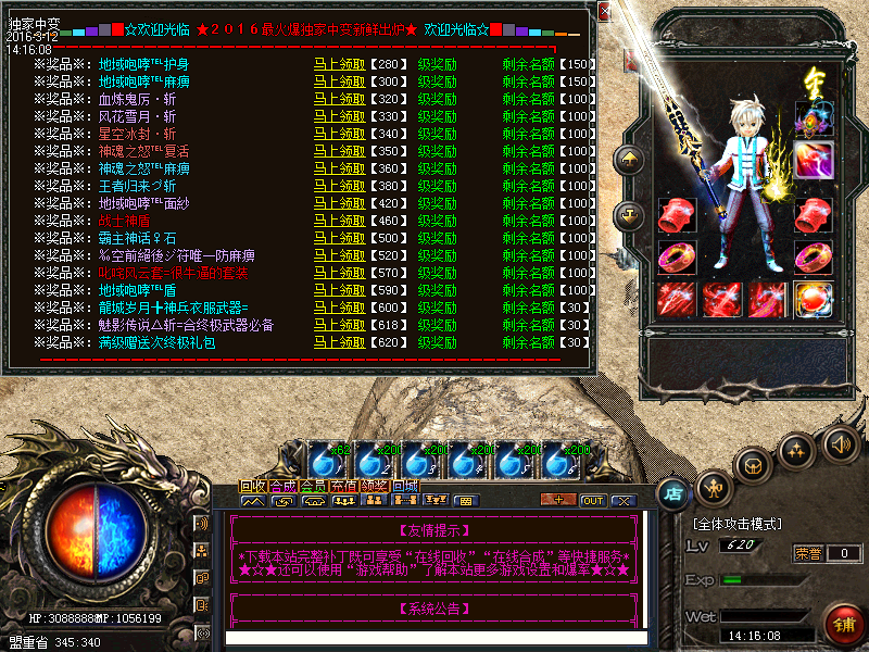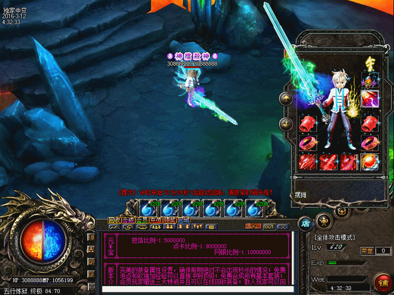 【地图怪物】:地图无限制.BOSS定时定点刷新.暴率高.新增终极boss爆终极衣服和武器
