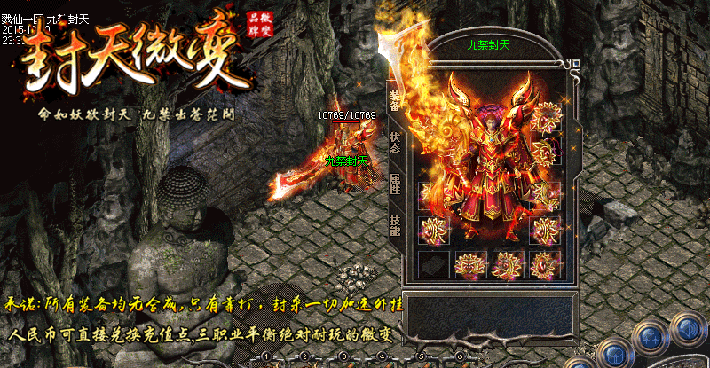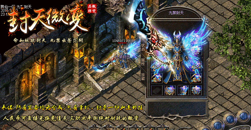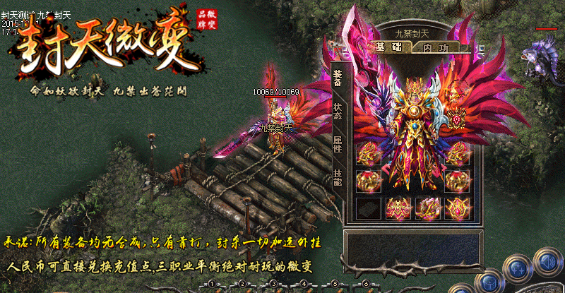 版本介绍:独家封天传奇微变版本,游戏所有装备绝无合成只能靠打带你找回曾经的回忆。