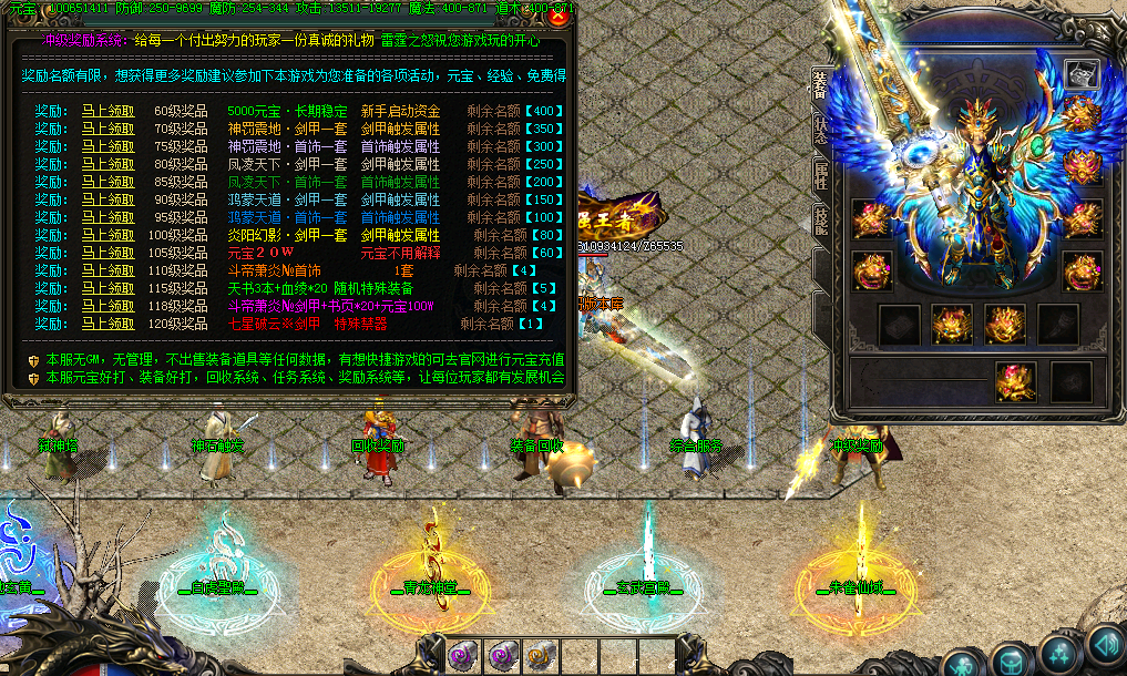首届攻城奖励:开区第二天晚8点拿沙奖励300万,以后天天拿沙奖励100万,激情不断奖励不断。