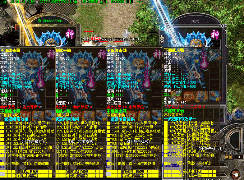 每天万元广告,人气火爆,散人玩家的天堂,不花钱也变爷 速度激情! 元宝比例:短信:1:3000000 点卡:1:6000000 网银:1:6000000 每天开放六个新区,第二天拿沙,奖励终极衣服武器加100人民币金元.! 独家活动每天活动开放不断 终极唾手可得 散人一夜也能变富翁 无家族 无待遇 无比例 长期公平公正稳定开放 纯散人 全国唯一持续更新铭門独家迷失.长久耐玩.激情四射。 本服:无元素 无秒杀 无特戒 最新独家迷失 正式开启 每天万元广告 只为激情 最新订制封挂系统 区区活人200+ 本服所有装备靠打,无合成,真正的散人服,激情无限! 24小时活动不断,激情,耐玩,长久,稳定,带你体验憋尿的感觉!