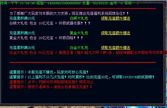 【元宝比例】1:5000000(500W) 点卡赠送90% 网银赠送100% 屌丝消费