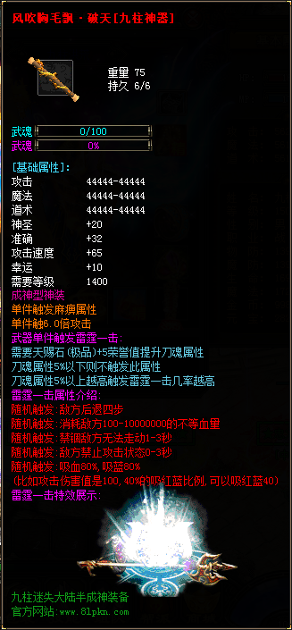 8:九柱神王和九天仙梦地图爆率更不要说了,直接可以掉落终极装备的,不管大BOSS还是小怪物都是可以爆出的哦!不要嫌掉落的慢,终极爆率那么高就是快餐服了