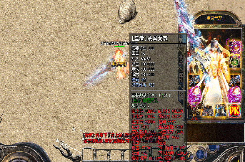 [皇者]战国无双 40倍攻击 注! 可鉴定倚天劈地技能
