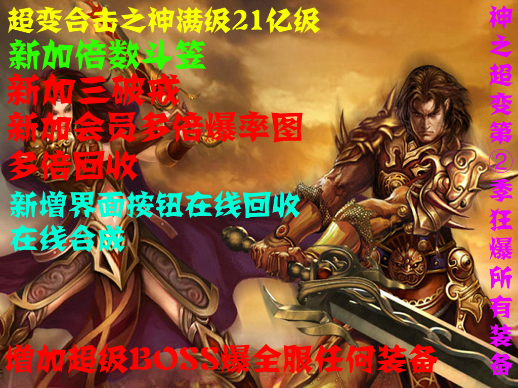游戏玩法简介:本服为2016最新超变合击版本,绝对全国独家绝无第二家,什么叫超变合击您进游戏就能体验!