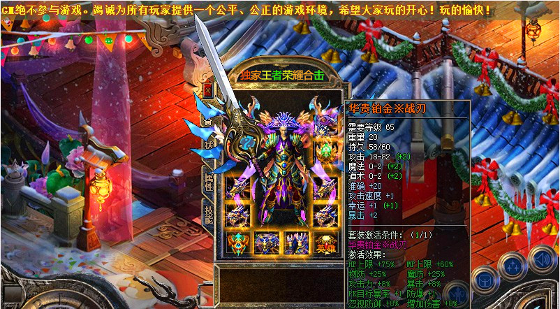 游戏介绍:2016星王良心团队打造!本服特点长久稳定.赞助好打.元宝好打.打架超级爽.散人好混.终极剑甲不爆死全家.立志打造一个散人大服!