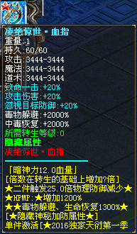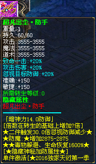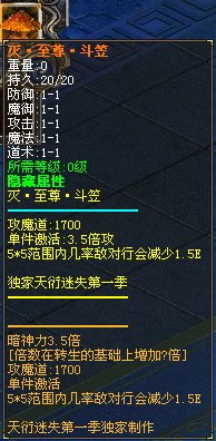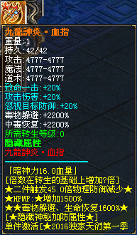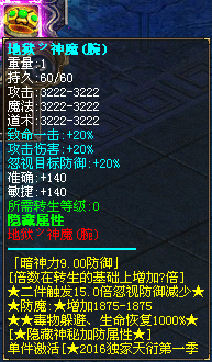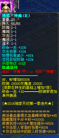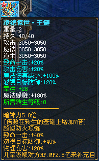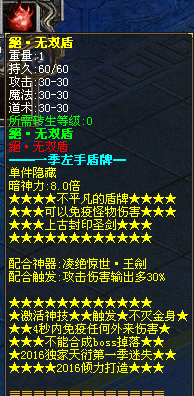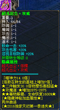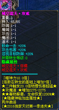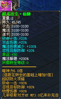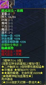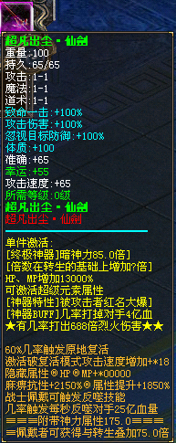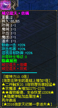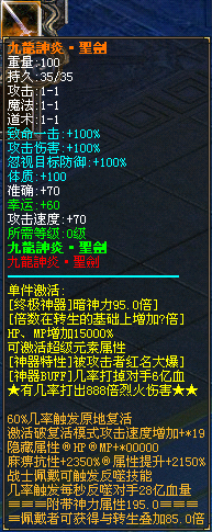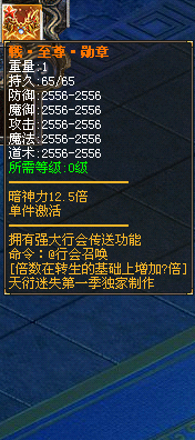 • 游戏介绍④ :本服共34转,转生越高爆率越好。本服所有装备全爆,让玩家体验爆装备的激情,所有装备已进行测试,PK起来更加爽!