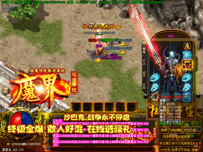 游戏介绍 本服所有装备全部靠打,BOSS均有终极爆率,屌丝也可以逆袭。