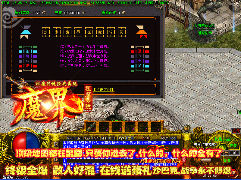 游戏介绍 本服元宝好打,几小时免费满级,回收比例超高,不花钱一样终极!