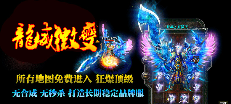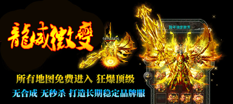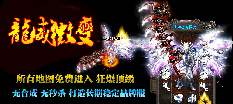 游戏介绍① >> 2015年龙威微变传奇重金聘请资深游戏策划主创及专业美工人员,历时半年多创新修改,呕心沥血制作,终于与大家见面。