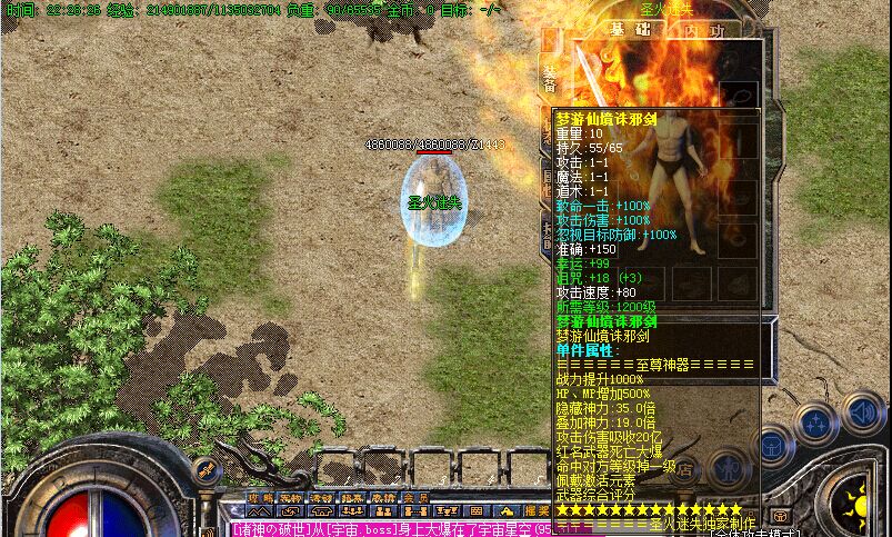 【特色③】:本服装备增加套装属性触发 佩带终极装备人物血量42亿 触发隐藏属性 威力十足。