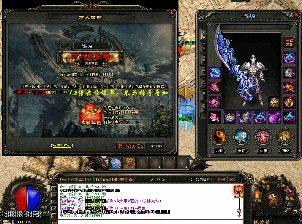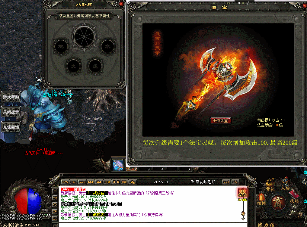 【游戏介绍】:精心调整装备暴率.BOSS爆顶级.高级地图小怪也爆顶级.人品好装备绝对好打