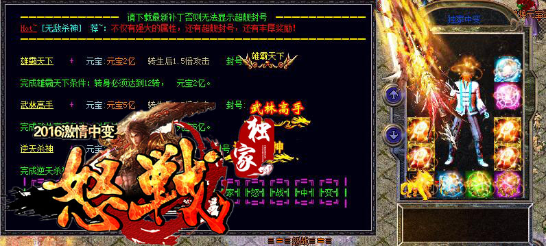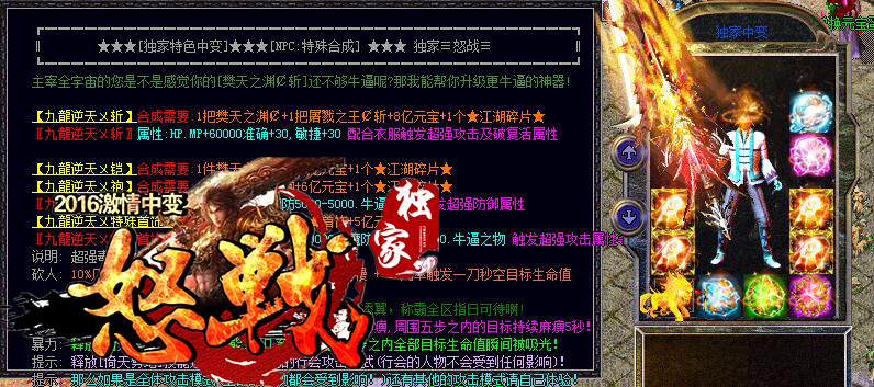 【版本特色】:免费合终极-免费转身送倍攻-送海量属性点-送超炫全屏技能