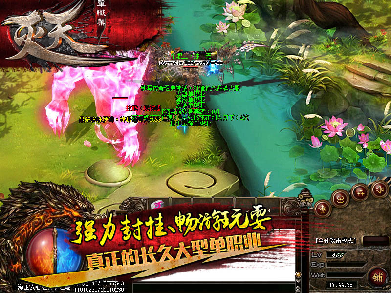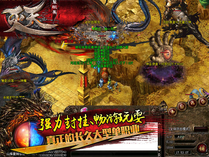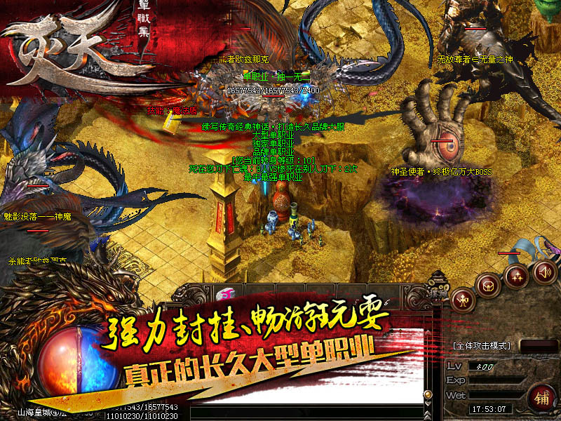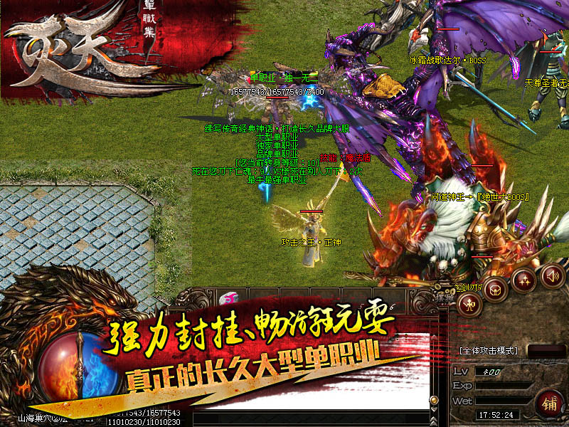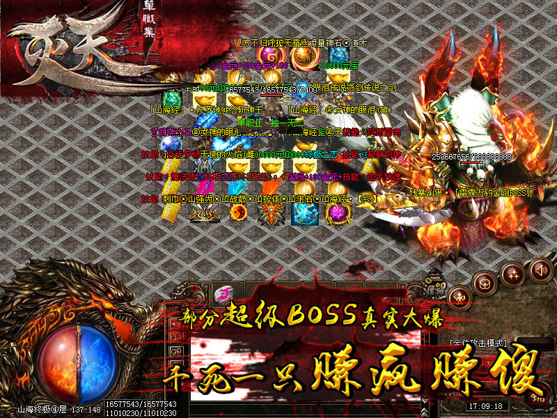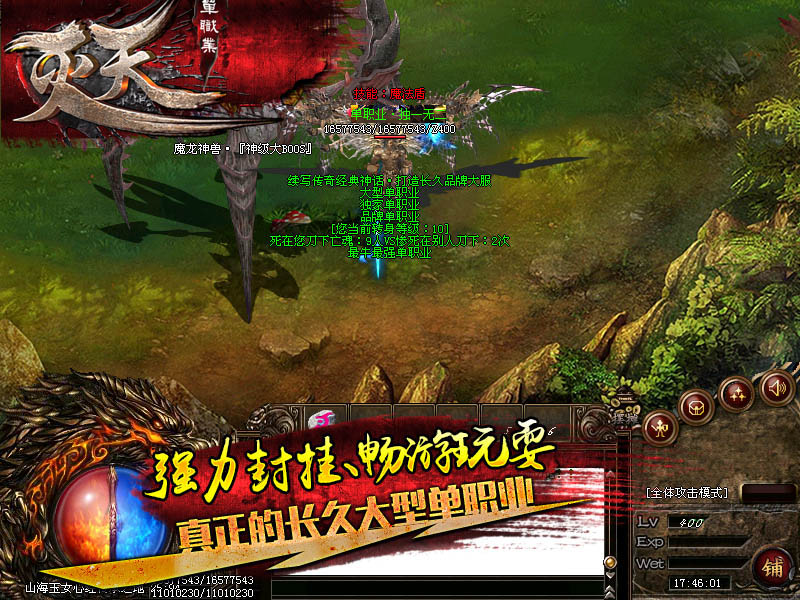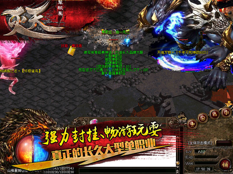 。 【版本介绍】:本服独家全新打造,市面上最新、最强、最火、品牌长久单职业,装备一律靠打,所有装备全部都爆,散人随时都可以逆袭。 【攻城奖励】:一般开区第二天晚上进行以天为组合区,第3天晚上20点准时统一拿沙,首次拿沙奖励200万元宝+10000金元+神秘超强物品一件 【奖励回馈】:本服游戏设有多重奖励回馈福利,活动可以获得,打怪也可以获得,惊喜多多,福利多多,具体玩家自行游戏体验为准. 【装备层次】:装备经过多元化测试,绝对不存在秒杀现象,PK暴爽,是高手还是屌丝完全看个人手法,强力封杀所有外,请各位玩家放心玩耍。 【地图介绍】:本服地图超多,前期后期都有打不完的怪,另本服设有多重副本挑战,爆率空前绝后,够胆你就去,挑战的过终极装备就在你的掌控之中。 【活动介绍】:副本设有大型送宝福利活动,大型送元宝金元神装等福利活动,绝对刺激,具体活动详情请进F自行体验 | | | |