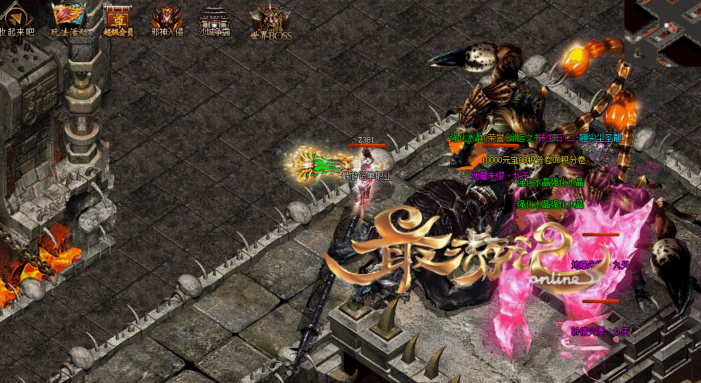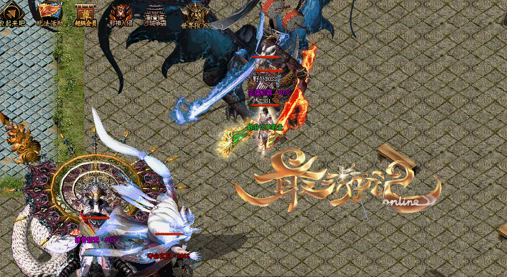 游戏介绍 独创打怪模式 全图刷BOSS 所有BOSS都爆终极、散人单职业