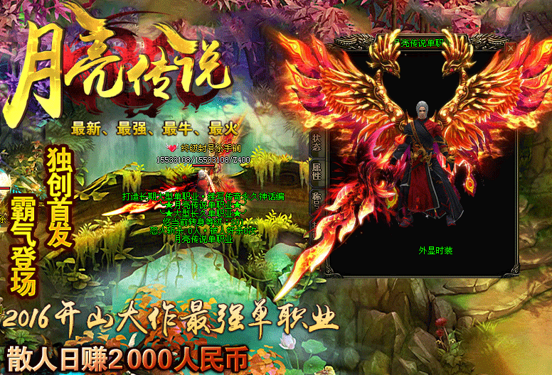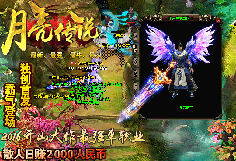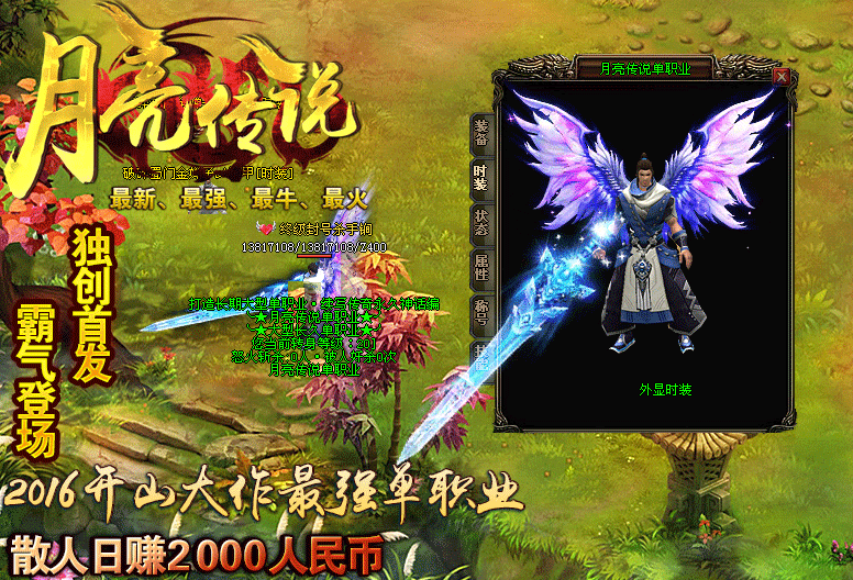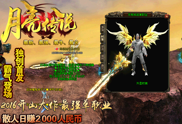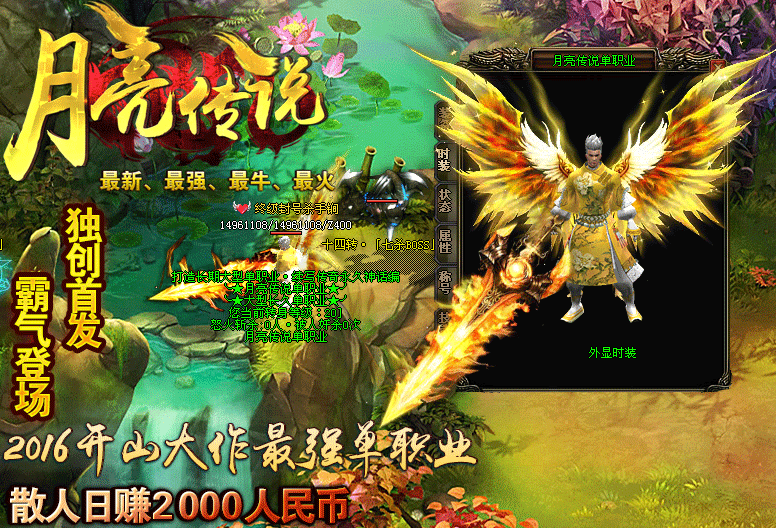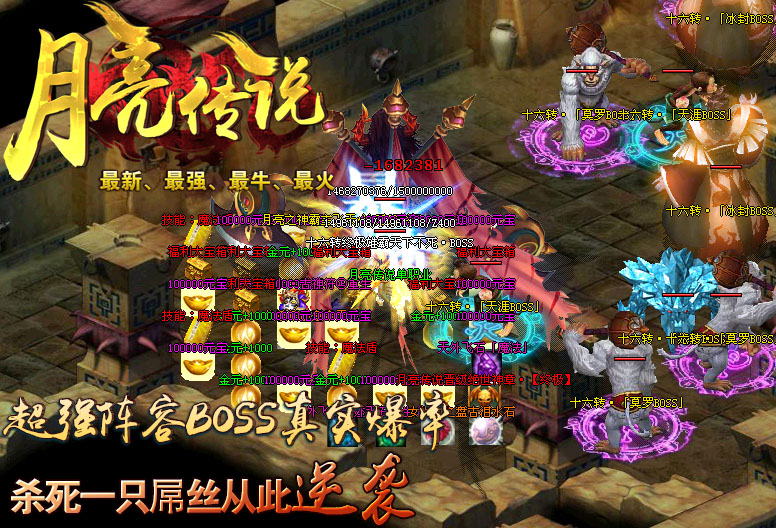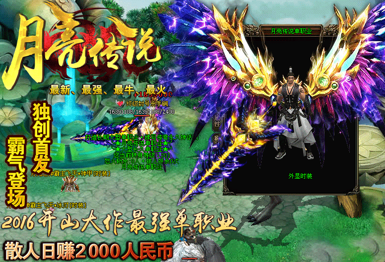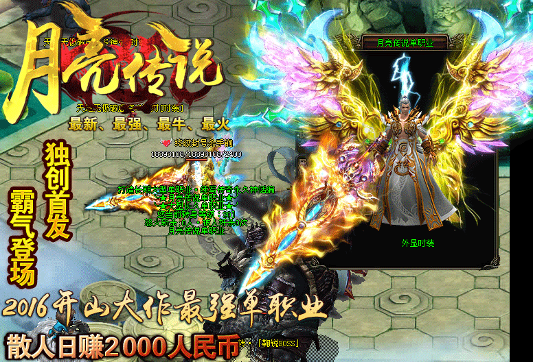 【版本介绍】:2016年开山大作,装备好打,爆率超高,地图多,所有怪都爆终极,一切看脸,真正大型单职业.