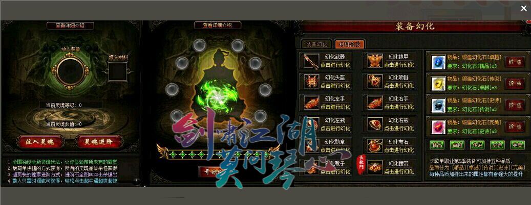【游戏特色】 >> 独家经典好玩,装备幻化,灵魂注入系统,全国独创,增强游戏可玩性,真正独家微变不秒杀,让单职业继续走红,PK给力火爆,爽!