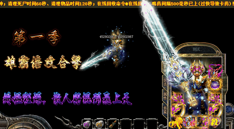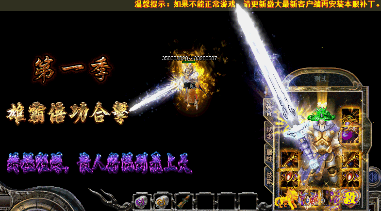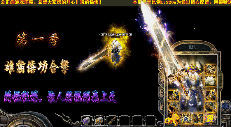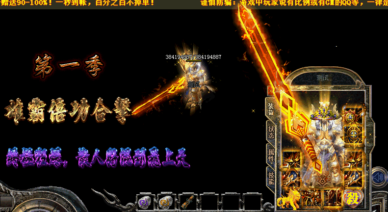 【元宝充值】:比例1:300W 网银赠送:100% 点卡赠送:100% 【爆率介绍】:所有装备,包括终极装备都有爆! 【怪物介绍】:BOSS多地图多.血越多的BOSS爆率就越高.(斗笠勋章不爆)装备无合成. 【最新更新】:新增地图每个地图汇集大量BOSS.暴率非常乐观. 【攻城奖励】:第三天早上合区 第三天集体攻沙 【拿沙奖励】!!!!! 【开区时间】:1区 11:00 2区 15:00 3区 18:00 4区 20:00 每天稳定开放4个新区 保证人气 【玩家交流群】:.本服赞助均可在游戏暴出.只要你肯花时间.一切都有 【游戏介绍】:倍功高了,6级刺杀没有伤害的玩家,请转其他职业在转回来!3级刺杀有伤害! 【游戏介绍】:只要你有时间玩,终极装备绝对不是梦!! 【武器倍功介绍】 ↓↓↓↓↓↓ ========================================================= [神剑]气宇轩昂 触发4倍倍伤害! [神剑]耀武扬威 触发6倍伤害! [神兵]八面威风 触发8倍伤害! [神兵]专横跋扈 触发10倍伤害! [魔剑]横行霸道 触发12倍伤害! [魔剑]恃才傲物 触发15倍伤害! [魔剑]不可一世 触发18倍伤害! [君临]为所欲为 触发21倍伤害! [君临]一手遮天 触发23倍伤害! [君临]有恃无恐 触发30倍伤害! [神迹]万马奔腾 触发40倍伤害! [神迹]一统天下 触发50倍伤害! [神迹]呼风唤雨 触发60倍伤害! [至尊]盛气凌人 触发70倍伤害! [王者]巍然屹立 触发80倍伤害!注! 可鉴定倚天劈地技能! [雄霸]横行天下 触发99倍伤害!可鉴定倚天劈地技能,破复活!!!! ========================================================= 【戒指倍功介绍】 ↓↓↓↓↓↓ ========================================================= [魔戒]有恃无恐★[ 暴击加血戒指] ★ [魔戒]万马奔腾★[3.2倍]★ [魔戒]一统天下★[5.6倍]★[ [魔戒]呼风唤雨★[7倍]★ [魔戒]盛气凌人★[8倍]★ [魔戒]巍然屹立★[9倍]★ [魔戒]横行天下★[10倍]★ ========================================================= 【项链倍功介绍】 ↓↓↓↓↓↓ ========================================================= [魔链]万马奔腾★[3.6倍] [魔链]一统天下★[5.6倍] [魔链]呼风唤雨★[7.6倍] [魔链]巍然屹立★[9.2倍] [魔链]横行天下★[10倍] =========================================================