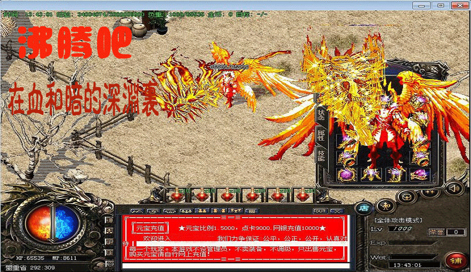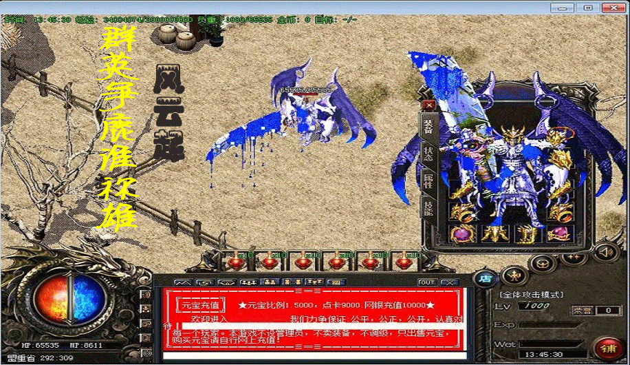 1.元宝比例:1:10000 点卡赠送90% 网银赠送100% 无比例 无待遇 只能平台充值!