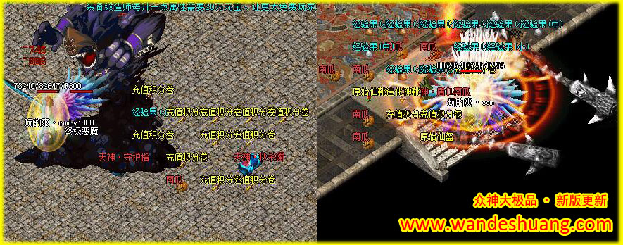 第三季更新:等级突破300级别,255级别以后通过打经验果,经验丹等方式提升等级,等级目前最高300级! |