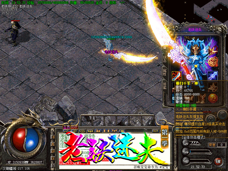 >>游戏介绍:新手上线直接送88元大礼包,直接泡点700级,单挑各种BOSS!