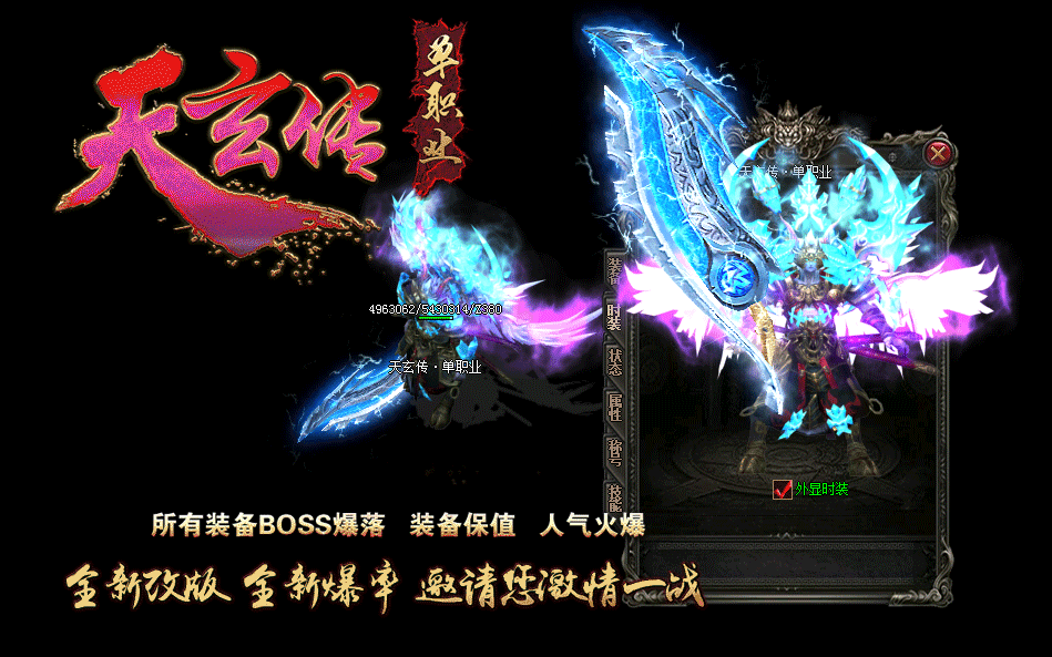 - 【游戏公告】:开新区第一天是双倍爆率.合区后爆率减半.新区100%真实双倍爆率,玩家可以在游戏中体验!