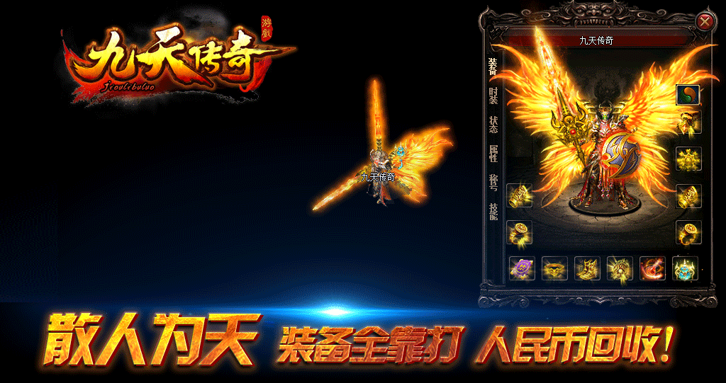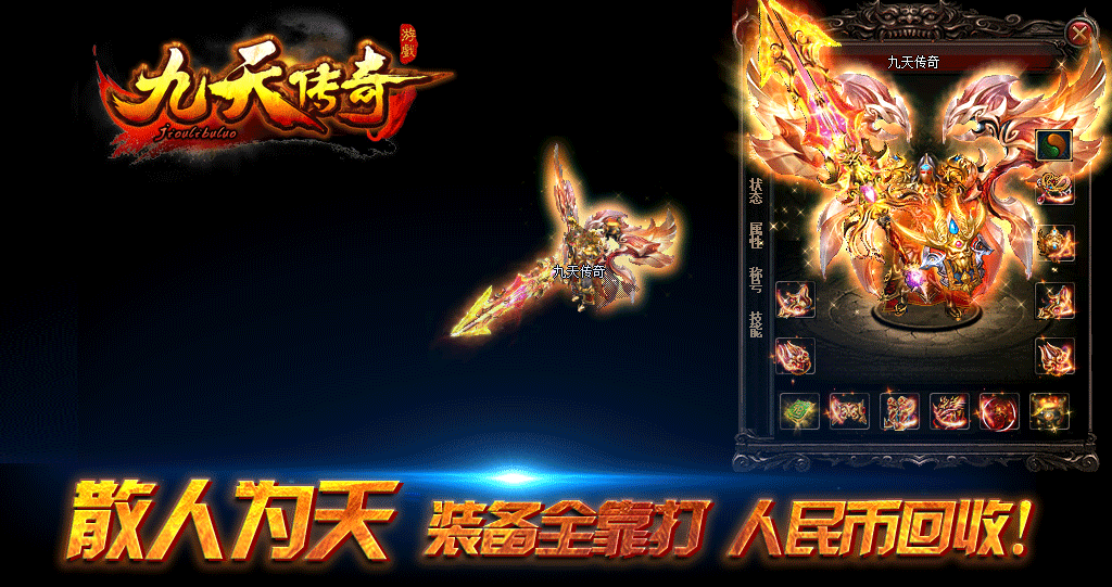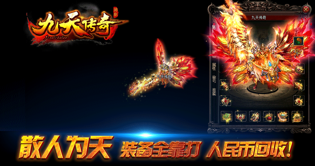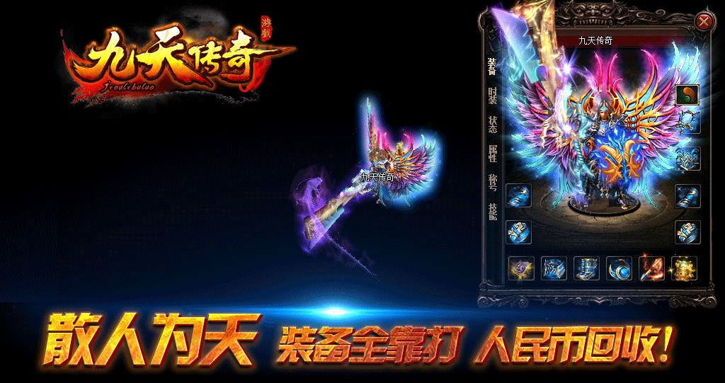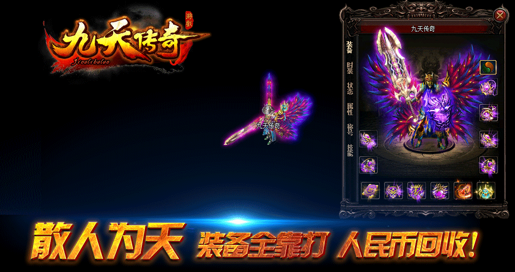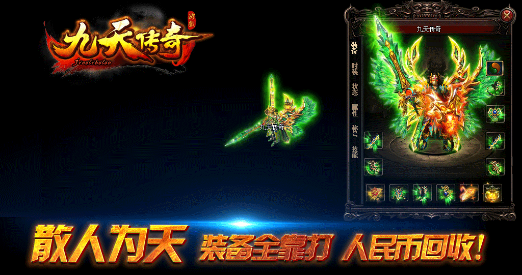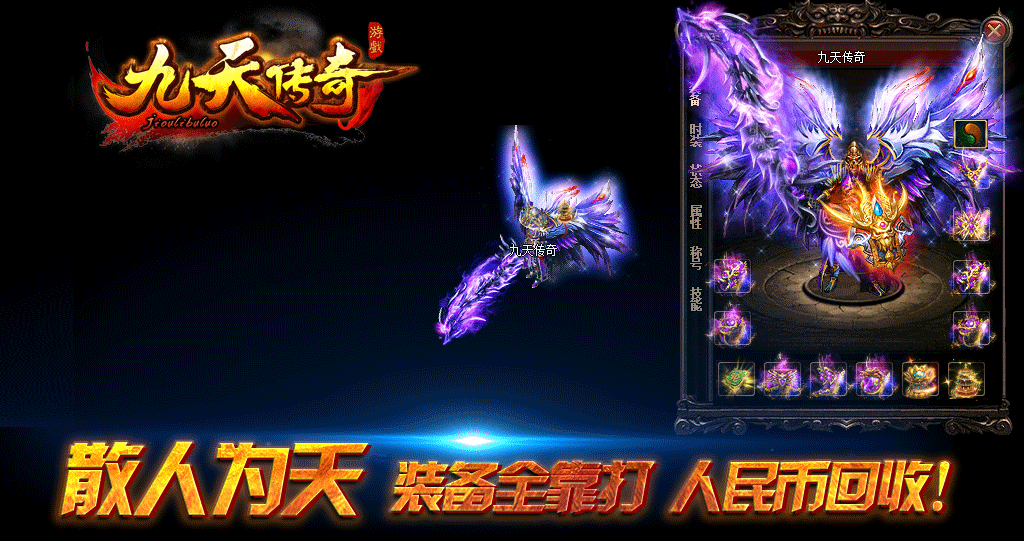 《九天传奇》官方授权运营,散人为天,RMB回收装备,无任何装备合成,攻沙奖励500元RMB.所有装备全爆.无任何隐藏消费!
