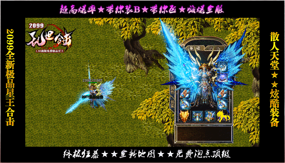 - 【装备层次】:星王·极品星王·追梦星王·冰雪星王·大圣星王·2099散人星王(首饰终极)·2066终极剑甲(剑甲终极)!