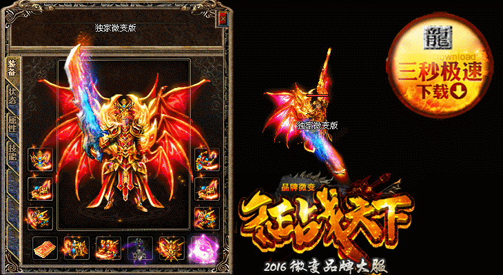 【版本介绍】:全部免费进入,大量装备,高额元宝,全部爆出!