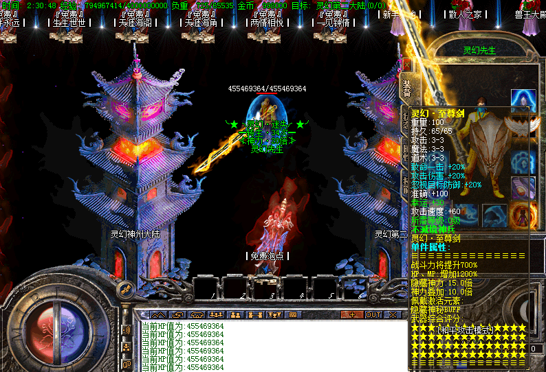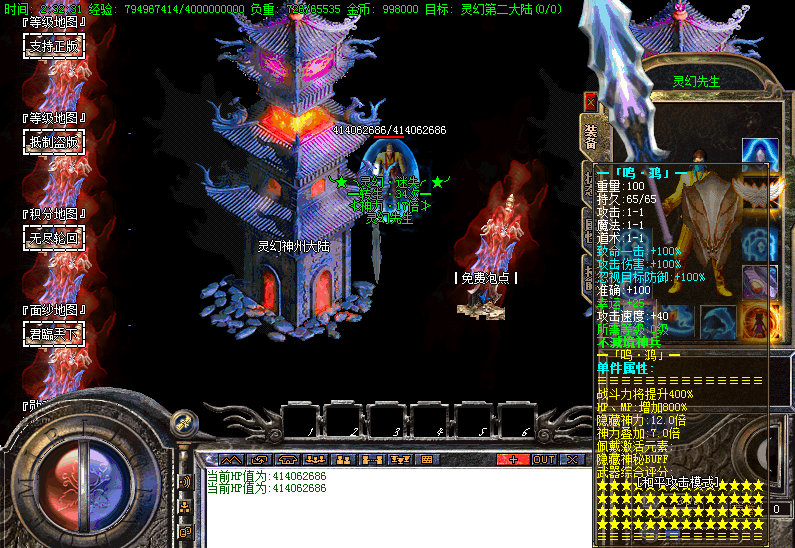 | 本服有四个大陆.新手可以进入第二大陆狂打装备.也可以跑进第三大陆.第四大陆使用积分或者通行证进入 |