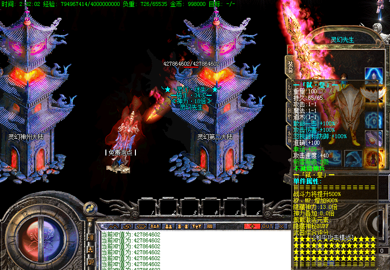 | 转生37转,等级1300级,佩戴终极项链,可以达到1400级,满血在29亿左右,不秒杀,也不会打不死人 |