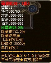 | 最后说一句,打怪不要越级打,一步一步来才是硬道理,本服就是看脸服,谁脸好,谁打出来终极装备 |