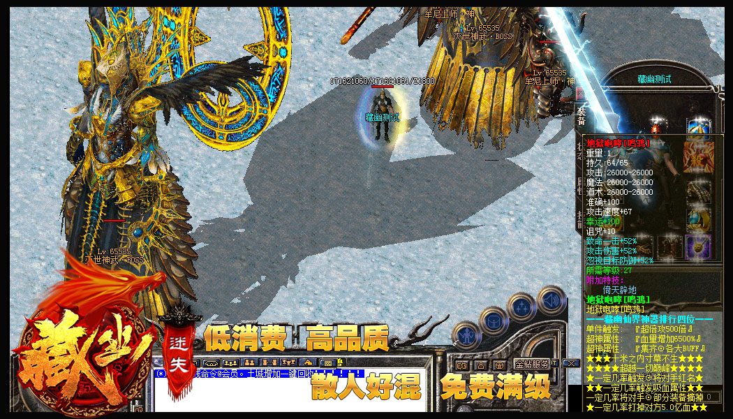 - 【游戏公告】:完全颠覆市场垃圾玩法,坑爹玩法,本世界BOSS,必掉神器,超级世界BOSS,必掉圣器!
