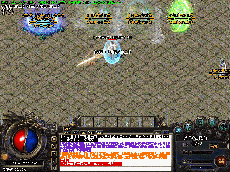 2016新版迷失:小龍迷失第三季 首战开启! 【开区模式】:每天多区,海量广告宣传,保证人气第2天晚上拿沙 【功城奖励】:攻沙奖励神秘物品+终极特殊物品,百人拿沙爽翻天。 【玩法介绍】:各地图都有BOSS,以BOSS为主小怪为辅来发展装备 【元宝回收】: 一键回收 装备好打 回收比例高 免费终极不是梦 【游戏活动】:活动多,24小时轮番上演,元宝装备送不停 【全民福利】:上线好礼赠送,各种最新玩法等您体验!