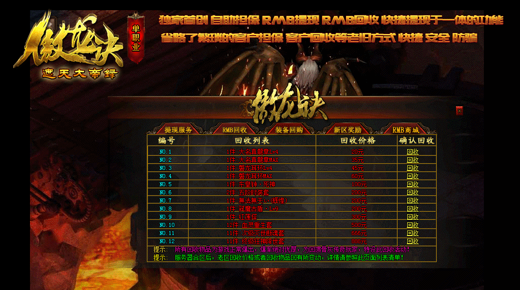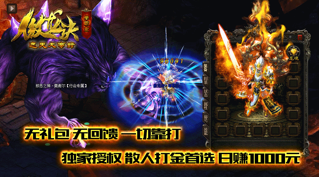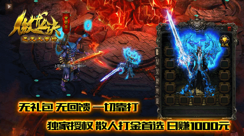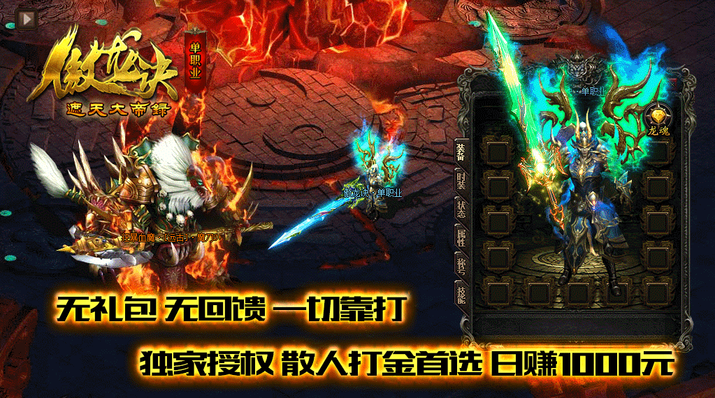• 【版本介绍】无充值回馈.礼包.冲值奖励.所有装备全部靠打.真正为散人打造!