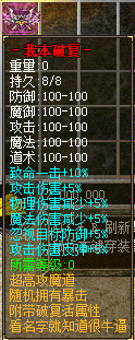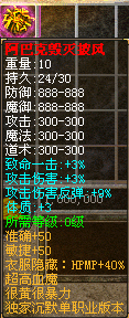 特色 ⑦ 本服装备隐藏属性介绍:【防御】【防毒】【传送】.【复活】.【麻痹】.【吸血】.各种特效BUFF.还可触发隐藏属性..具体请进游戏查看装备备注.