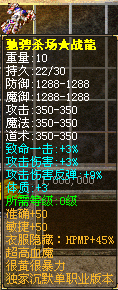 2.驰骋杀场★战龍 触发某种未知神力,超级防御属性,有此物什么都BOSS不怕。 物品等级★★★★★★★★★★★★≮游戏自行体验≯